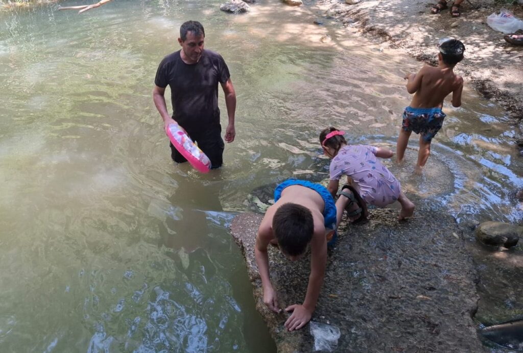 Každopádně posíleni velkým úspěchem u moře jsme se včera rozhodli je vytáhnout zas. Tentokrát ke sladké vodě. Dva pramínky v lese Baraam, hodinka cesty od nás. Poznali jsme nové místo, osvěžili se (teda většina z nás) v ledové vodě, prohodili řeč s dalšími výletujícími – a že jich bylo. Přece jen konec prázdnin. Jako ano, bylo to fajn, i když zlatým hřebem výletu pro Neva byla shwarma v pitě… Ale říkám si, jestli si další podobný výlet s Giyorou radši nedáme sami ;).
