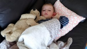 Nevo brečel většinu cesty domů, kde pak na gauči usnul. Probudil se opět s brekem, ale už byl odpočinutej dost na to, abych z něj dostala, že ho bolí hlava. Problém vyřešil paracetamolový sirup a o hodinu později se tu rozčiloval, proč ho nechci nechat skákat na trampolíně. A to jsem dala jako obvykle méně než je doporučená dávka.
