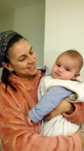 9:15, právě jsme se vrátili z osady Ahihud, kde jsem odevzdala Neva do školky. Když jsem nahoru po schodech k domu táhla autosedačku s Eitanem, volal technik, že dorazí za půl hodiny. Mašinka na filtrování, ohřev a chlazení pitné vody vypověděla službu. Přestože jsem s malými přestávkami byla vzhůru od čtvrt na pět, stejně jsme zas do školky dorazili pozdě. Nevo vstával s řevem v půl šesté, protože se pusou praštil o rám postýlky. Nevím jak, každopádně pobrekával pak celé ráno.