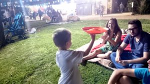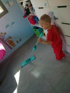 Dvouhodinový šlofíček nám dodal potřebnou energii na zbytek odpoledne i večera. Všichni jsme byli v dobré náladě, užili si krásného dne a kluci zůstali na zahradě ještě dlouho po té, co Giyora odešel večer do synagogy. Bylo jasné, že uspávat je před půl devátou vůbec nemá smysl, čili jsme koupali později a přesně tak, aby z vany už po skončení šabatu, tedy ve třičtvrtě na osm, mohli mrknout na kousek pohádky. Pak ještě chvilku pohrát a v devět byl Giyora po sprše, sbalený na třídenní školní výlet a připravený číst dětem pohádky na dobrou noc. Šily sebou nakonec skoro do desíti, ale kdo by si s tím po tak odpočinkovém dni dělal hlavu, že :-).