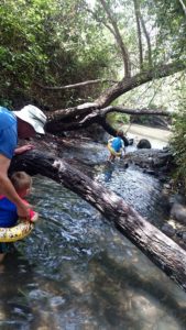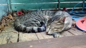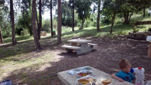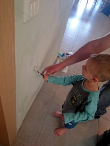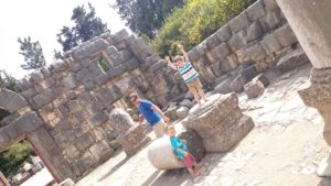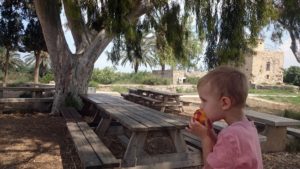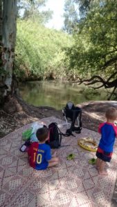Giyora navlík talit a přidal se k modlícím se chlápkům. Já klukům vyměnila svršky a snažila se je zabavit pokud možno venku. Hledali jsme šneky a hezký kameny. Naštěstí za pár minut bylo po modlení a chystalo se jídlo. Děti místo obvyklého ruinování synagogy a zběsilého běhání spořádaně baštily krekry s humusem. Nevím, jestli pomohlo, že jsem jim venku důrazně sdělila, co je akceptovatelný chování, nebo to, že je po cestě Giyora tak unavil. Při návratu domů si ještě vyžádali zastávku na klouzačce a houpačce na hřišti a následně na zahradě. A i odtamtud pak byl problém je dotlačit domů. Daniel si nakonec uštědřil slušný zranění vstupními dveřmi na palci u nohy a scéna, která následovala, ho vyčerpala natolik, že jak se zklidnil, usnul. Nevo zabral vzápětí po něm během přebalování. My se vklidu znovu nasnídali a prvně zkusili přelouskat modlitbu, co se říká po jídle. Není to zrovna nejkratší a Giyora vytuhl po dvou třetinách v půlce věty. Mě dodělaly chvilku na to dvě stránky z učebnice, tak jsme tu chrupkali celá rodinka.