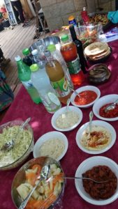 Již podruhé v řadě nám vyšla páteční večeře ve dvou. Nevo po náročném dni odpadl dokonce už ve čtvrt na šest (jen tak tak to nebylo ze židle při večeři) a Daniela jsem uspala krátce před osmou, tedy skoro o půl hodiny dřív, než se Giyora vrátil ze synagogy. Místo pacifikování dětí jsem se tak mohla spolu s Giyorou soustředit na texty čtené při kiduši a po večeři jsme mohli nerušeně ještě debatovat. Těsně před tím než jsem šla do hajan, jsme ještě prošli sidur (modlitební knížku), protože na sobotní ráno jsem modlení v synagoze měla místo Giyory poprvé naplánované já. I když mi Giyora vysvětlil, kdy se co říká a dala jsem si na příslušná místa záložky, bylo jasný, že budu většinu času splašeně listovat a hledat, kde jsme. Na to by dvě hodiny byly příliš, čili jsem se chystala jen na druhou část – od devíti do desíti.