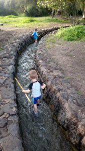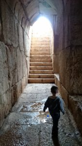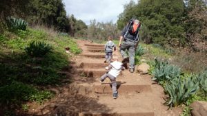 No, cíl teda vlastně bylo auto na parkovišti, takže teď jsme museli z údolí řeky vystoupat zpátky nahoru. A zatímco teenageři se do schodů plazili a s fňukáním posedávali a odpočívali na každém rohu, moje dvě ptáčata letěla kupředu. „Jé, koukej, jak to ten malej slaďouš dává s přehledem a ty si stěžuješ! A to má ty schody skoro do pasu, tobě stačí jen lehce zvednout nohu a je ti to za těžko!“ Prudily holčiny unavené spolužáky a zřejmě tím moje draky ještě povzbudily. Nahoru jsme se díky tomu dostali nečekaně rychle, osvěžili se pitnou vodou z kohoutku u odpočívadla a pak už se popobíháním snažili udržet tempo s prcky, kterým vyhladovělo, a hnali se ke stánku s občerstvením za slíbenými křupkami. Kromě křupek jsme koupili ještě dvě kila čerstvých jablek, o jejichž košér původu se dá dost pochybovat, ale byly neodolatelně dobrý. Nevo nezklamal a jablko upřednostnil před křupkama, což Daniel samozřejmě uvítal, protože zbylo víc na něj.