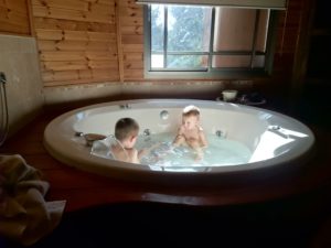 Když vám v Izraeli nabízí cimr, už podle ceny je jasné, že by se nemělo jednat jen o pokoj, jak význam slova v němčině Čechovi napovídá. Cimr v Izraeli je samostatně stojící objekt, na severu země obvykle roubená chatka, do angličtiny překládané jako „cabin“. Naše rodinná roubenka za 750 shekelů za noc měla obývací pokoj s plně vybaveným kuchyňským koutem, koupelnu se sprchou, malý „dětský“ pokoj a rozlehlou ložnici a velkou kruhovou jacuzzi. V obýváčku byla krbová kamna, která bychom možná použili, kdybychom se nemuseli stresovat tím, že se poblíž neustále honí naše malá dráčata, takhle přes noc topila centrální klimatizace. Podobné vybavení objektu i cena je pro cimr v Izraeli standard, stejně jako houpací síť a gril na zahradě a bazén v chatové oblasti, pečlivě uzavřený proti náhodnému vniknutí nehlídané drobotiny.