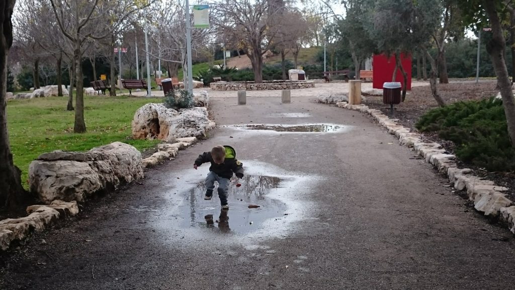 Odcházeli jsme po druhé, což je čas, kdy se hostitelé obvykle prostřídávají v odpoledním spánku. Protože moji prckové skoro nic nesnědly, stavili jsme se po cestě na hřiště na chvilku doma, kde se zaplácli hummusem. Když jsme ve tři vyráželi na hřiště, zbývaly do konce šabatu už jen dvě a půl hodiny. Protože kluci přes den nespali, bylo jasný, že půjdou večer hodně brzy. I když teda že oba odpadnou už před půl sedmou po 15 minutách pohádky, jsem nepředpokládala.